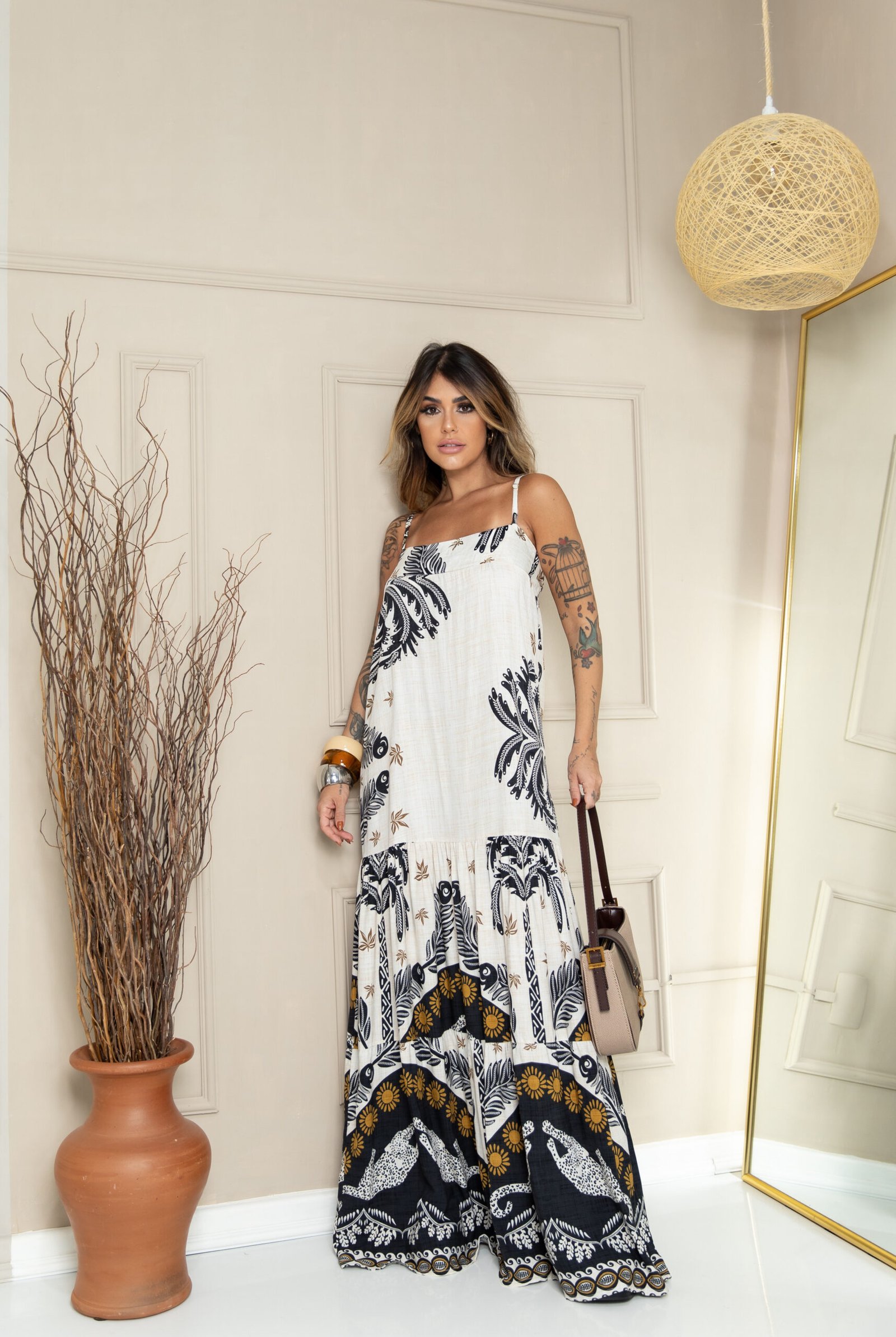 Combine o Vestido Helena com rasteiras para um look casual chic, salto para ocasiões especiais ou tênis para um toque moderno e despojado. Seja qual for a escolha, ele será sua peça favorita para expressar estilo com leveza!